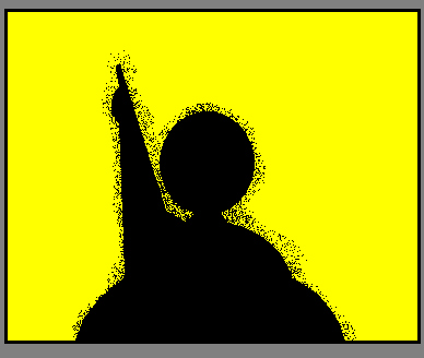 Now, I purposely muddled the silhouette in the picture to demonstrate that you may not get a perfect image. Using a cheapo webcam has its drawbacks, and this is one of them: the image quality isn't perfect. If you had the money to buy a real video camera, you could get a better image. But, since you're reading this tutorial, you probably don't. The best thing is to just get over it. :-P Not to worry, though -- the software you're about to use will clear up a lot of the badness, so it's not going to be as bad as you think. One other thing: don't worry if your silhouettes aren't perfectly black. In fact, you're probably not going to get much blackness at all, no matter how hard you try. Don't sweat it. As long as there is enough contrast with the wall, you're still in pretty good shape.