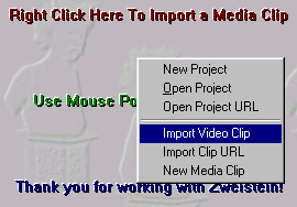 Note: If you didn't create a video file which Zwei-Stein can handle, then redo Part 1, making sure to save the video in a useable format. (Or, convert it using any number of freely available freeware converter programs. TMPGEnc and VirtualDub are two very good examples.) There's really no need to worry, your capture software isn't likely to be able to create anything Zwei-Stein can't use -- especially if you use a freeware program.